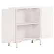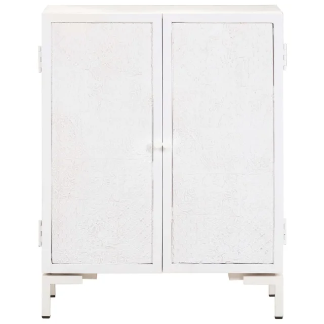 Stranska omarica je izdelana iz trdnega mangovega lesa, ki je dovolj močan za prenašanje teže. Dobro se spopada tudi z obrabo in uporabo, zato je omarica stabilna in trpežna. Prašno premazan železen okvir prispeva k dodatni stabilnosti. Ta komoda ima 2 vrata z veliko prostora za shranjevanje. Močna lesena površina je idealna za razstavljanje okrasnih predmetov, kot so foto okvirji, rože, vaze itd.