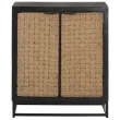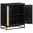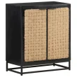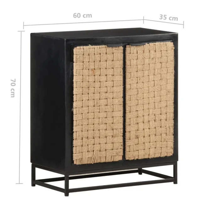 Stranska omarica je izdelana iz trdnega mangovega lesa, tropskega trdega lesa, ki je dovolj močan, da lahko prenaša težo. Odporen je tudi na obrabo, zaradi česar je stabilen in vzdržljiv. Vrata so narejena iz naravne jute, dodatno stabilnost pa zagotavlja tudi železni podstavek. Ta omara za shranjevanje ima dvoja vrata, ki zagotavljata veliko prostora za shranjevanje.