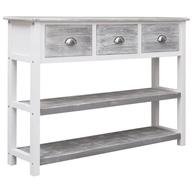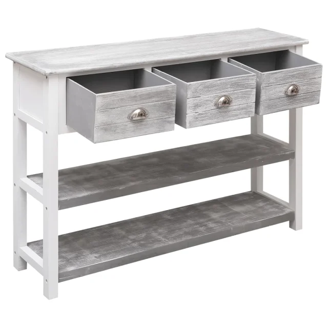 Komoda je izdelana iz premium topolovine in lesa pavlovnije ter je zelo stabilna in trpežna. Njena močna površina je idealna za odlaganje okrasnih stvari, kot so vaze ali lončnice. 3 predali in 2 polici zagotavljajo veliko prostora za organizirano shranjevanje vaših stvari. Lahko se uporablja tudi kot praktična konzolna mizica.