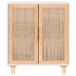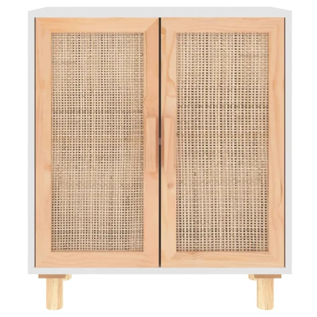 Komoda - Predalnik bela 60x30x70 cm trdna borovina in naravni ratan