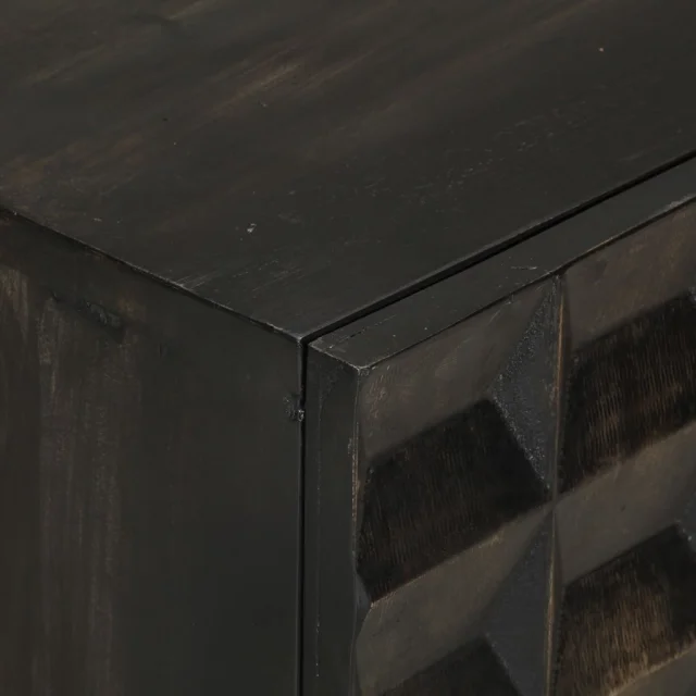 Ta lesena komoda s kockastim dizajnom bo v vašo dnevno sobo dodala industrijski pridih.