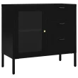 Komoda - Predalnik črna 75x35x70 cm jeklo in kaljeno steklo