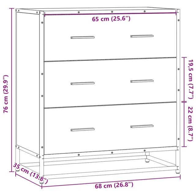 Komoda - Predalnik dimljeni hrast 68x35x76 cm inženirski les in kovina