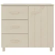 Ta omara s predali je izdelana iz trdne borovine, zato je stabilna in močna. Visoka omarica ima 1 vrata in 3 drsne predale, ki zagotavljajo dovolj prostora za shranjevanje vaših različnih dnevnih potrebščin na dosegu roke. Močna površina komode je popolna za razstavljanje okrasnih stvari, foto okvirjev in lončnic.