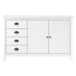 Ta stranska omarica iz trdne borovine je stabilna in trdna. Zahvaljujoč 2 vratom in 4 prostornim predalom ta omarica ponuja veliko prostora za shranjevanje vseh stvari, ki jih želite imeti lepo urejene in na dosegu roke.