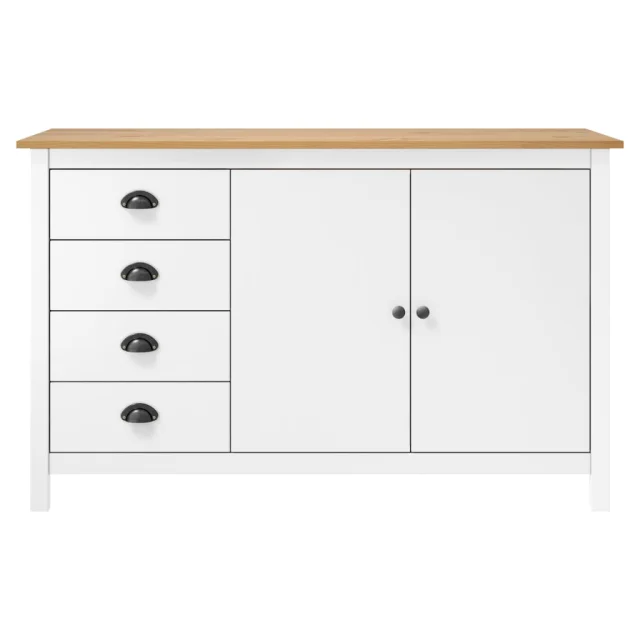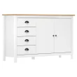 Ta stranska omarica iz trdne borovine je stabilna in trdna. Zahvaljujoč 2 vratom in 4 prostornim predalom ta omarica ponuja veliko prostora za shranjevanje vseh stvari, ki jih želite imeti lepo urejene in na dosegu roke.