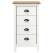 Kompaktna omarica ima 4 predale, ki se lepo odpirajo, ter nudi dovolj prostora za shranjevanje manjših stvari, ki bodo tako organizirane in pri roki. Pravokotna površina je primerna za odlaganje košare s sadjem ali razstavljanje okrasnih stvari, kot so okvirji s slikami ali lončnice. Organizator za shranjevanje je preprost za sestavljanje.