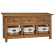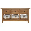 Ta komoda bo vašemu dekorju dodala nekaj rustikalnega šarma. Izdelana je iz predelanega lesa, znaki obrabe pa vsakemu kosu pohištva dajejo edinstven videz in pripomorejo k spektakularnemu starinskemu stilu. Komoda ima 3 predale in 3 odstranljive košarice iz ratana.