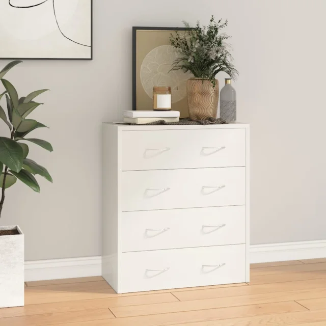 Komoda - Predalnik s 4 predali 60x30,5x71 cm visok sijaj bela