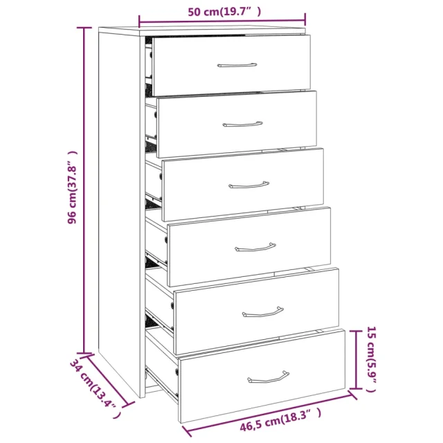 Komoda - Predalnik s 6 predali siva sonoma 50x34x96 cm konstruiran les