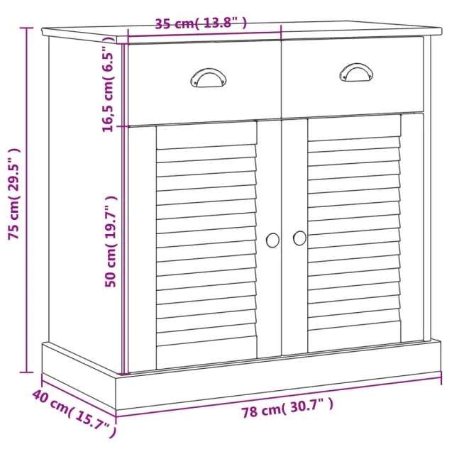 • Prostorno in funkcionalno shranjevanje: V predalih in predelkih je v kredenci dovolj prostora za urejeno shranjevanje stvari. Poleg tega ima več možnosti uporabe. Omarico lahko uporabljate tudi kot bife, kuhinjsko omarico ali stransko omarico za dnevno sobo ali hodnik.