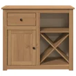 • Prostorno in funkcionalno shranjevanje: Kredenca s predalom, predelki in vinskim stojalom ponuja dovolj prostora za urejeno shranjevanje stvari. Poleg tega ima več možnosti uporabe. Komodo lahko uporabljate tudi kot bife, kuhinjsko omarico ali stransko omarico za dnevno sobo ali hodnik.