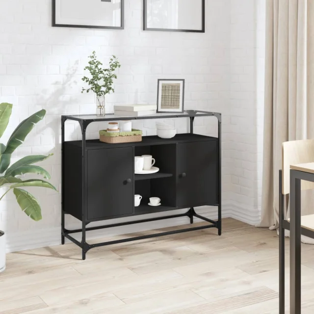 Komoda - Predalnik s stekleno ploščo črna 98x35x81 cm inženirski les