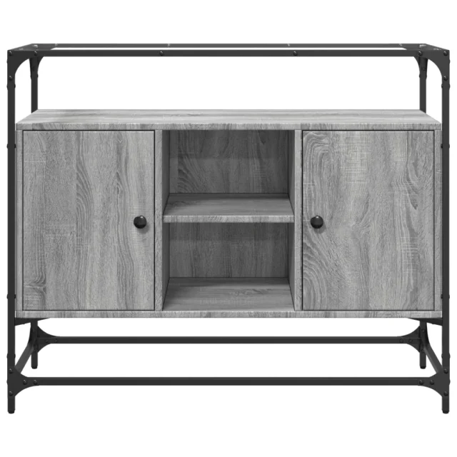 Komoda - Predalnik s stekleno ploščo siva sonoma 98x35x81 cm inženirski les
