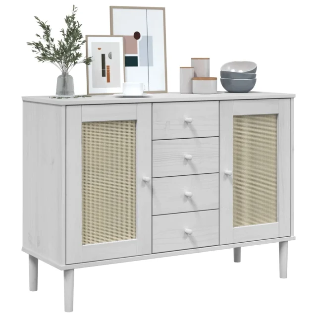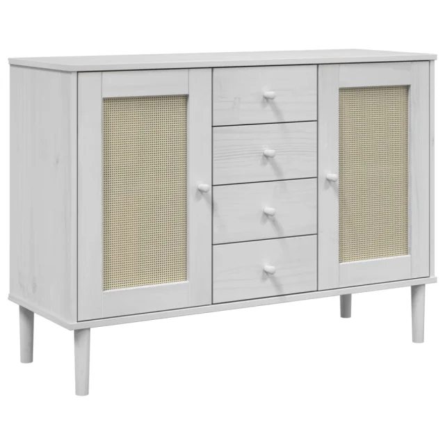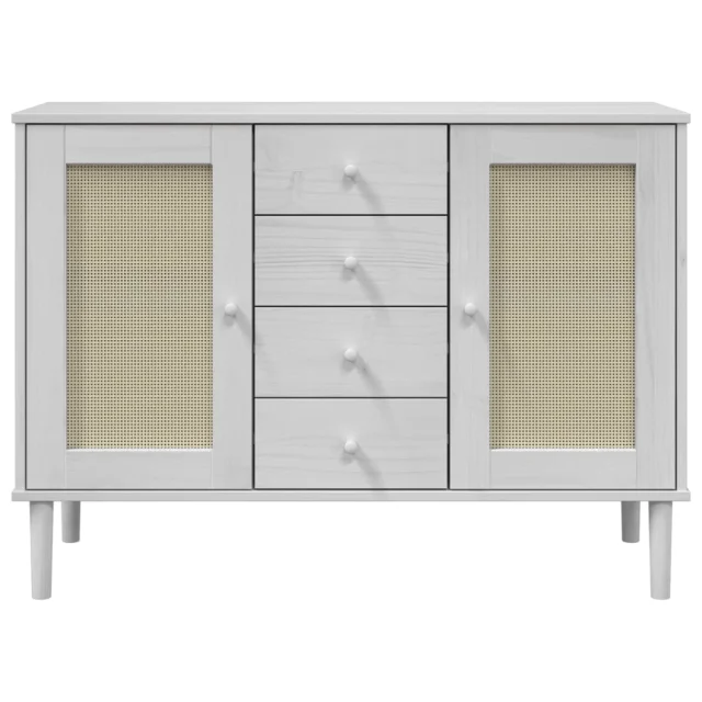 Komoda - Predalnik SENJA videz ratana bela 112x40x80 cm trdna borovina