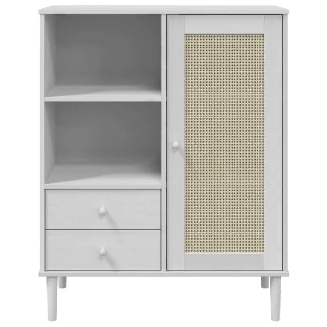 Komoda - Predalnik SENJA videz ratana bela 90x40x112 cm trdna borovina