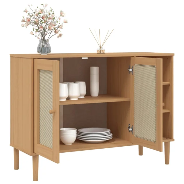 Komoda - Predalnik SENJA videz ratana rjava 112x40x80 cm trdna borovina