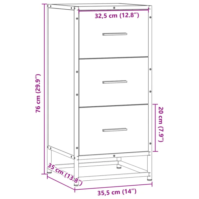 Komoda - Predalnik siva sonoma 35,5x35x76 cm inženirski les in kovina