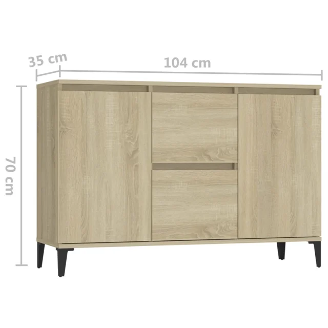 Stranska omarica je dovolj trdna in vzdržljiva za dolgotrajno uporabo. Kovinske noge zagotavljajo izjemno stabilnost. Ta knjižna omarica ima 2 predala in 2 vrata ter nudi dovolj prostora za shranjevanje vaših stvari. Na trdno površino lahko položite tudi okrasne predmete in foto okvirje. Omarica za shranjevanje je enostavna za čiščenje z vlažno krpo.