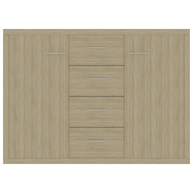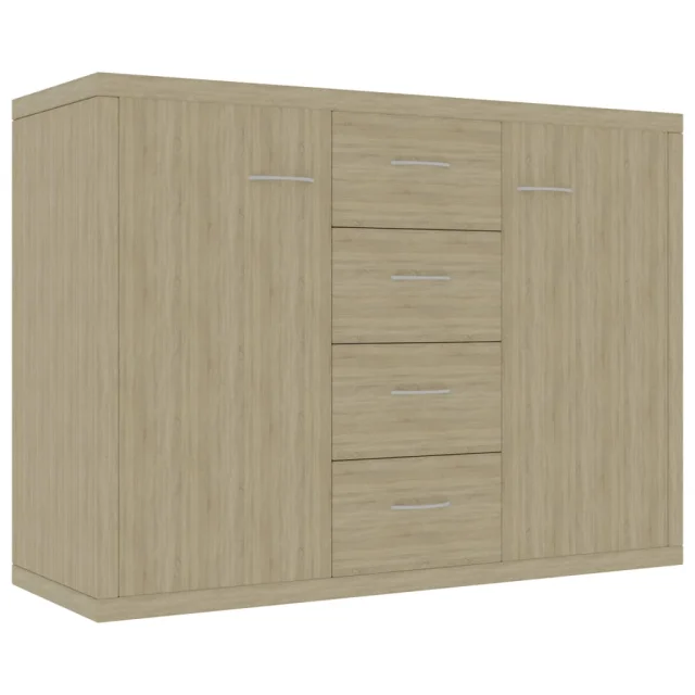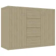 Ta komoda ima 4 predale in 2 vrata, zato zagotavlja veliko prostora za knjige, večpredstavnostne naprave in druge stvari. Na njeno trdno površino lahko postavite dekorativne stvari, foto okvirje ali rože. Lahko se uporablja tudi kot nizka omarica, stranska omarica itd. Zahvaljujoč vrhunskemu materialu plošče je ta kredenca narejena za dolgotrajno uporabo.