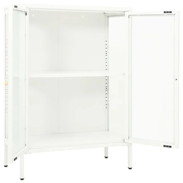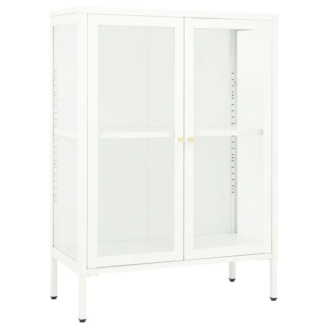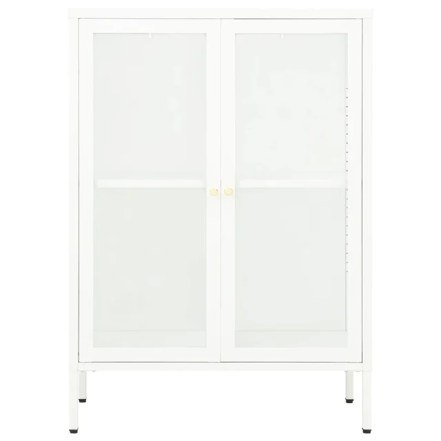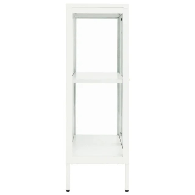Komoda - Predalnik - Stranska omarica bela 75x35x105 cm jeklo in steklo