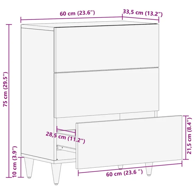 Komoda - Predalnik Svetlo siva 60x33,5x75 cm Masivni les Mango