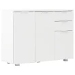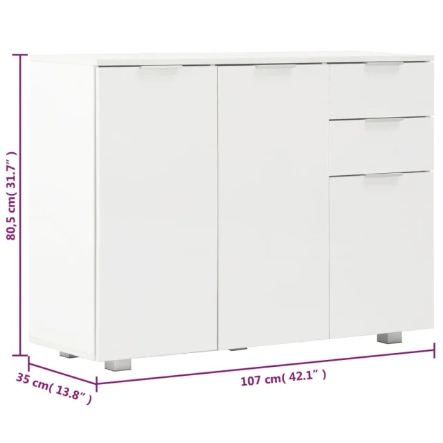 Predalnik je izdelan iz konstruiranega lesa z visokim sijajem v beli barvi, ima izpopolnjen videz ter je izjemno stabilen in trpežen. Poleg tega ima omara z dvema predaloma in tremi vrati dovolj prostora za shranjevanje različnih predmetov, zaradi česar bo vaša soba urejena in čista. To omarico z visokim sijajem je enostavno očistiti. Ponesite svoj notranji dekor na naslednjo raven z našo elegantno omarico!