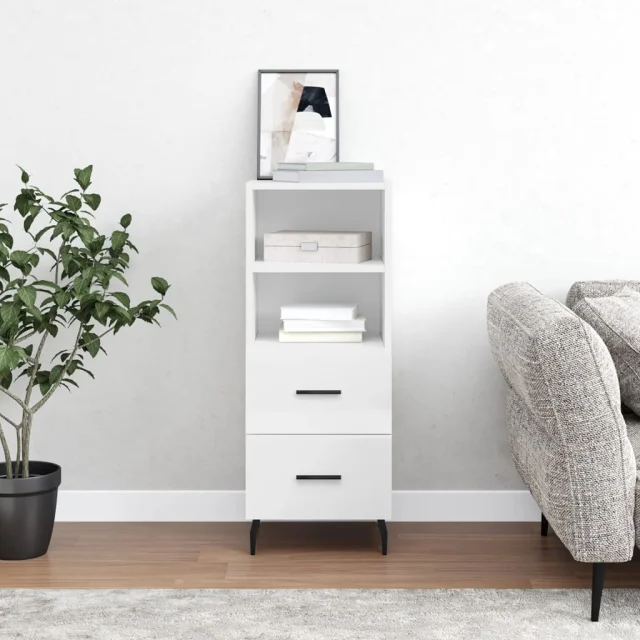 Komoda - Predalnik visok sijaj bela 34,5x34x90 cm inženirski les