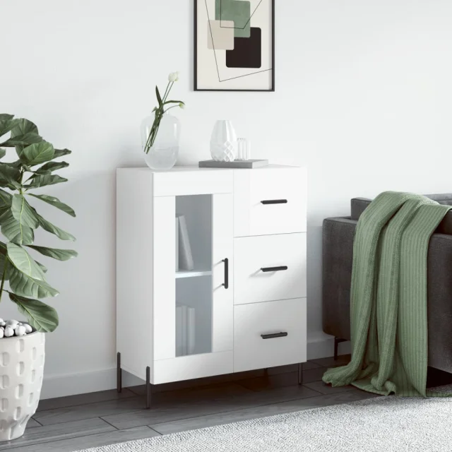 Komoda - Predalnik visok sijaj bela 69,5x34x90 cm inženirski les
