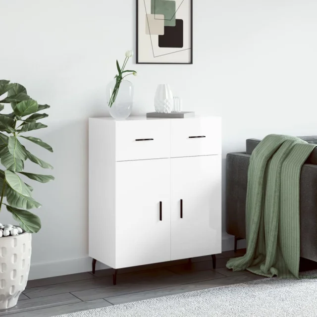 Komoda - Predalnik visok sijaj bela 69,5x34x90 cm inženirski les