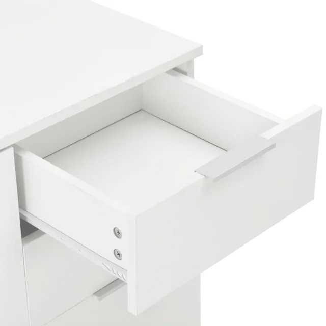 Predalnik je izdelan iz iverne plošče z visokim sijajem, ki mu daje prefinjen videz ter zagotavlja izjemno stabilnost in trpežnost. Poleg tega ima omara z dvema predaloma in dvemi vrati dovolj prostora za shranjevanje različnih predmetov, zaradi česar bo vaša soba urejena in čista. Čiščenje te omarice z visokim sijajem je preprosto.