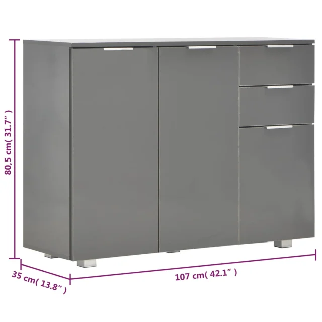 Predalnik je izdelan iz konstruiranega lesa z visokim sijajem v beli barvi, ima izpopolnjen videz ter je izjemno stabilen in trpežen. Poleg tega ima omara z dvema predaloma in tremi vrati dovolj prostora za shranjevanje različnih predmetov, zaradi česar bo vaša soba urejena in čista. To omarico z visokim sijajem je enostavno očistiti. Ponesite svoj notranji dekor na naslednjo raven z našo elegantno omarico!