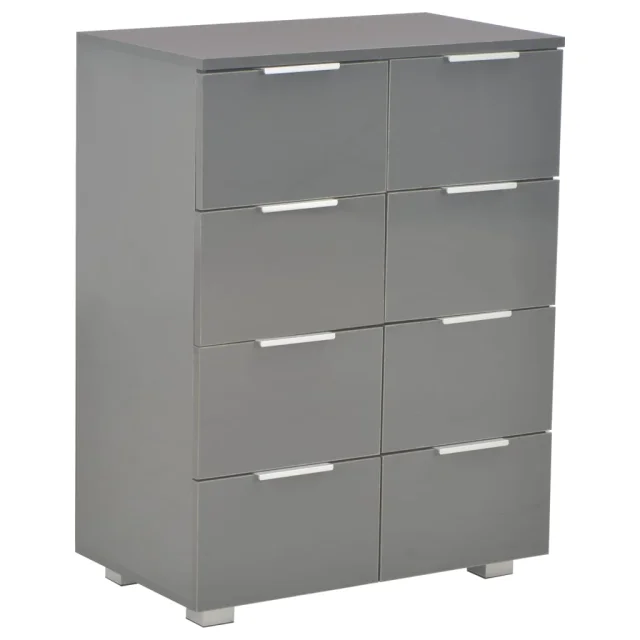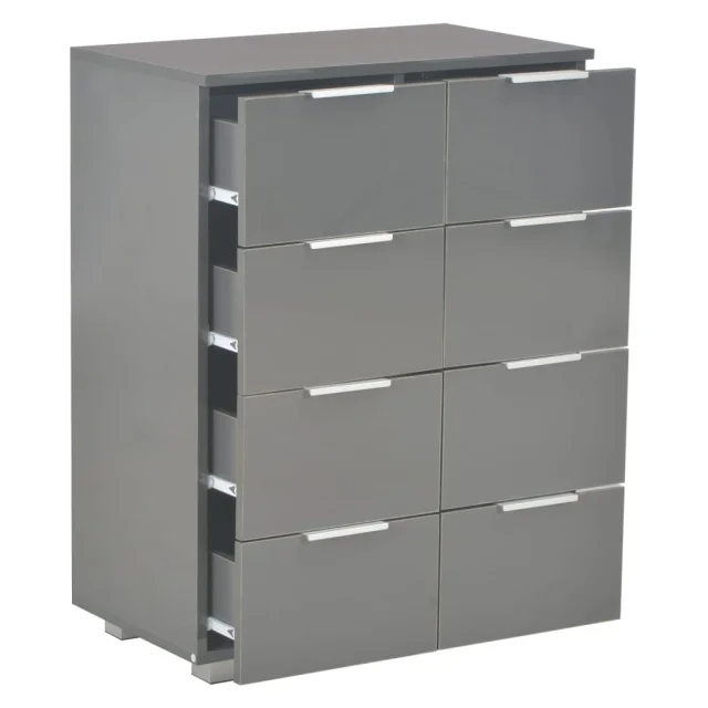 Predalnik je izdelan iz inženirskega lesa z visokim sijajem, ki mu daje prefinjen videz ter zagotavlja izjemno stabilnost in vzdržljivost. Poleg tega omarica, opremljena z 8 predali, nudi dovolj prostora za shranjevanje različnih predmetov, da bo vaša soba urejena in čista. Čiščenje te omarice z visokim sijajem je preprosto.
