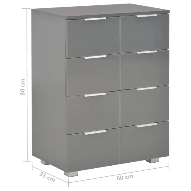 Komoda - Predalnik visok sijaj siva 60x35x80 cm inženirski les