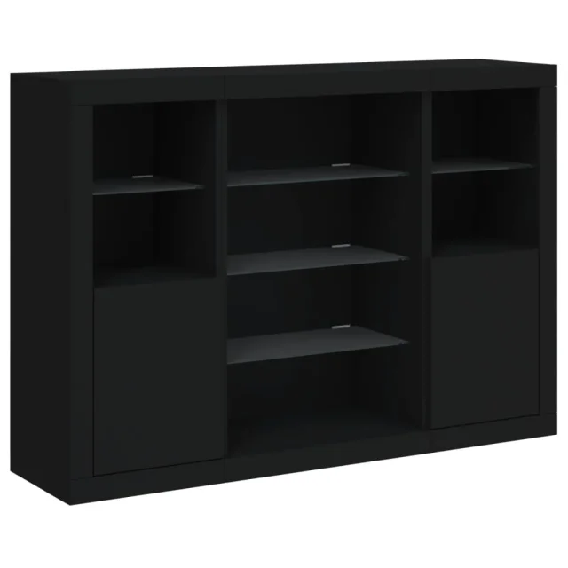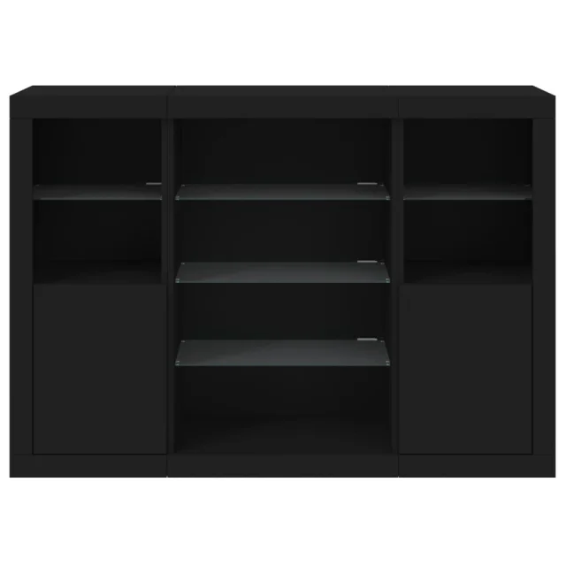Komoda - Predalnik z LED diodami 3 kosi črn inženirski les