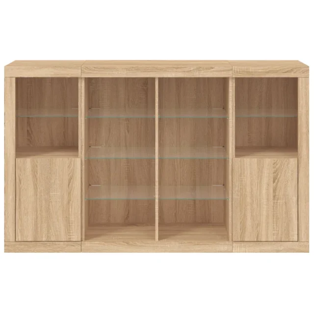 Komoda - Predalnik z LED diodami 3 kosi sonoma hrast inženirski les