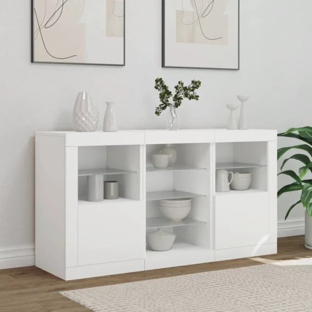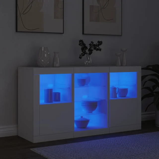 • RGB LED luči: Bife omarica je opremljena z živahnimi RGB LED lučkami. Z različnimi prilagodljivimi meniji lahko brez težav spreminjate barvo luči in celo nastavite njihovo samodejno prilagajanje. Te LED lučke ne le poudarjajo sodoben videz komode, temveč tudi povečujejo njeno modno privlačnost.
