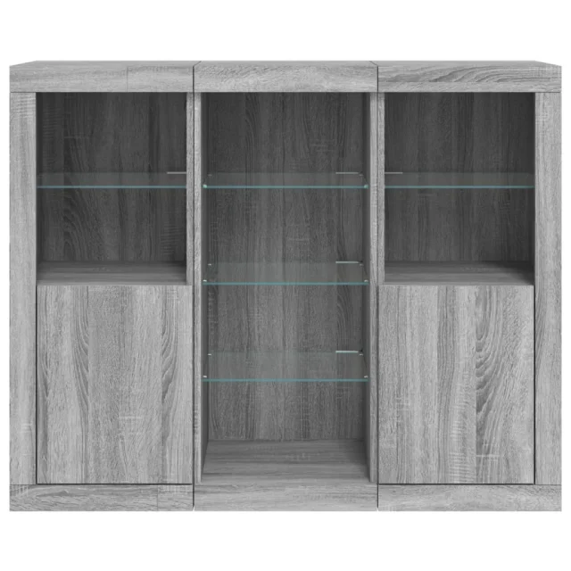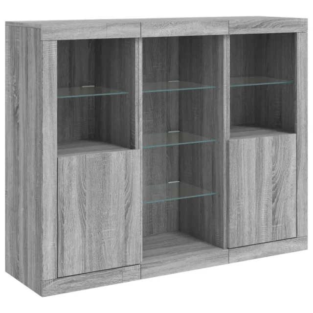 Komoda - Predalnik z LED lučkami 3 kosi siva sonoma inženirski les