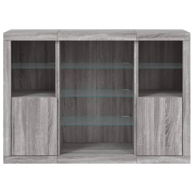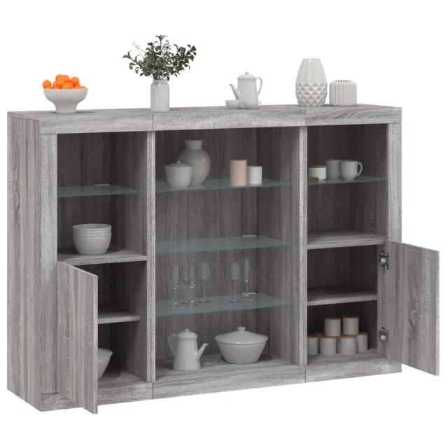 Komoda - Predalnik z LED lučkami 3 kosi siva sonoma inženirski les