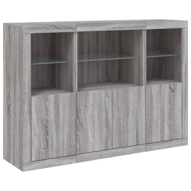 Komoda - Predalnik z LED lučkami 3 kosi siva sonoma inženirski les
