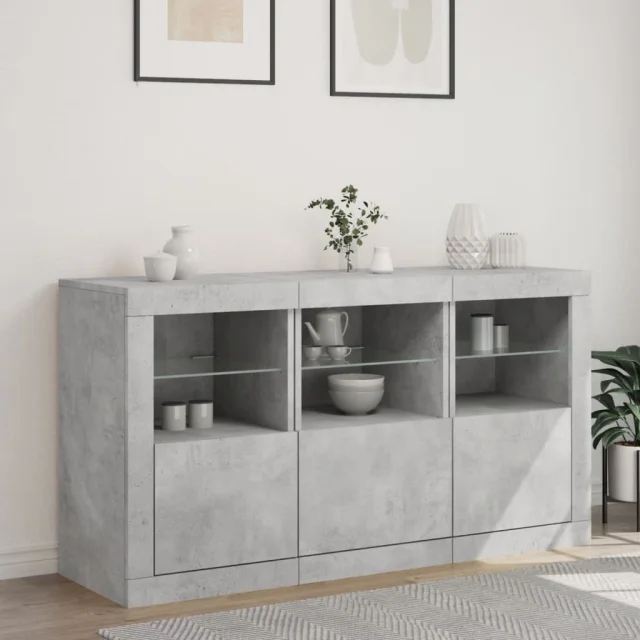 Komoda - Predalnik z LED lučkami betonsko siva 123x37x67 cm