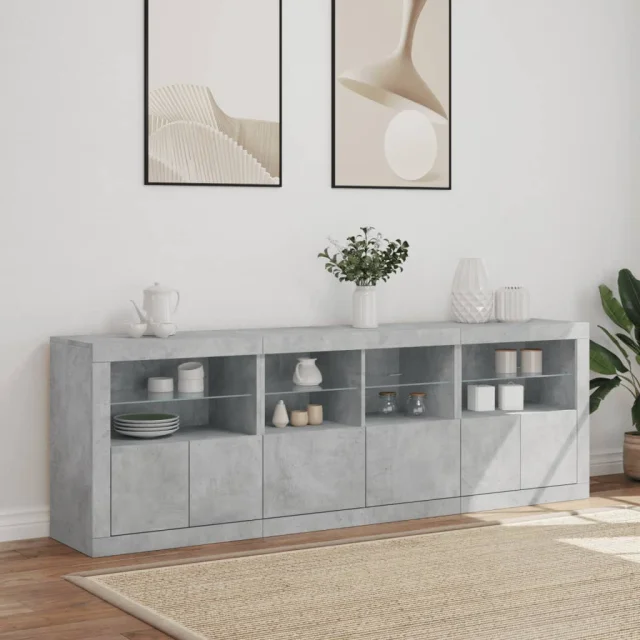 Komoda - Predalnik z LED lučkami betonsko siva 202x37x67 cm
