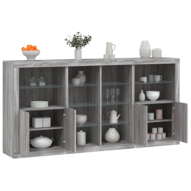 Komoda - Predalnik z LED lučkami siva sonoma 202x37x100 cm