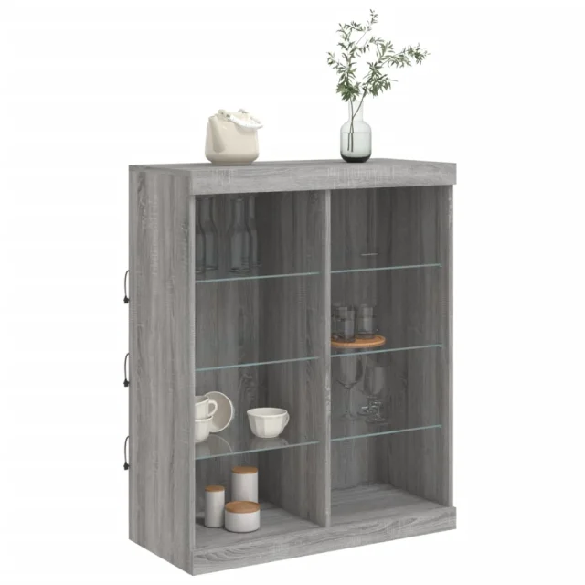 Komoda - Predalnik z LED lučkami siva sonoma 81x37x100 cm