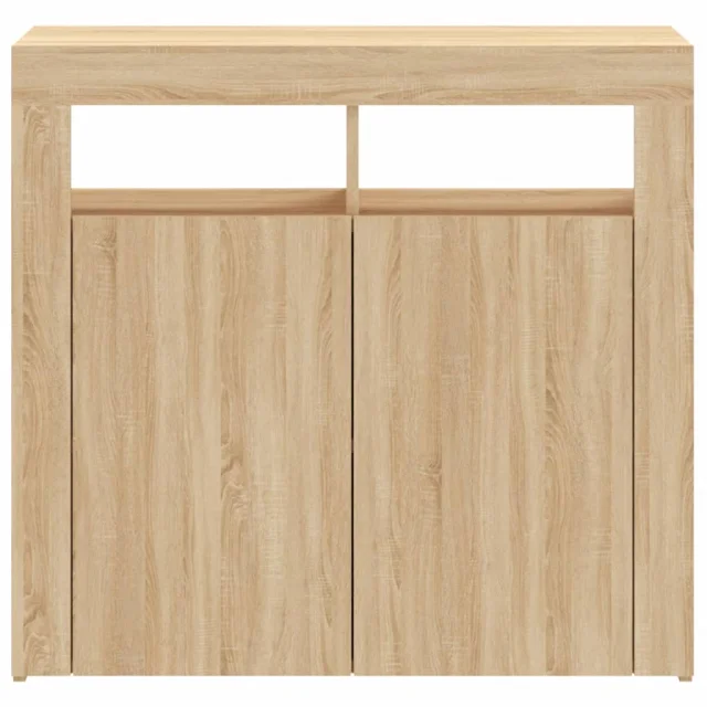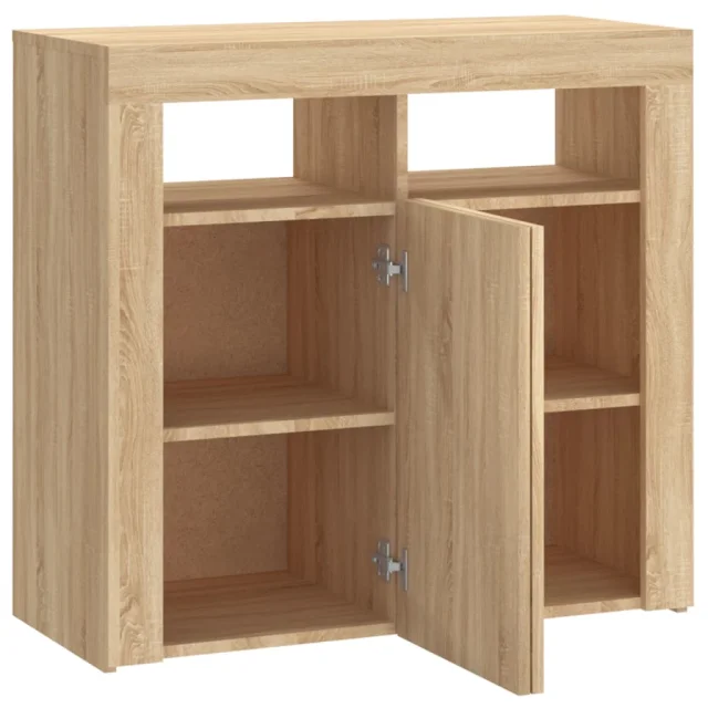 Zaradi trdne konstrukcije je ta komoda izjemno vzdržljiva in trdna. Zagotavlja dovolj prostora za shranjevanje knjig, multimedijskih naprav in drugih predmetov. Robustna površina je idealna za razstavljanje okrasnih predmetov, okvirjev za fotografije ali lončnic. Ta omarica ima RGB LED lučke z različnimi meniji za spreminjanje barv svetlobe, ki omogočajo samodejno spreminjanje barv. LED lučke poudarjajo sodoben videz in prispevajo k trendovskemu občutku.