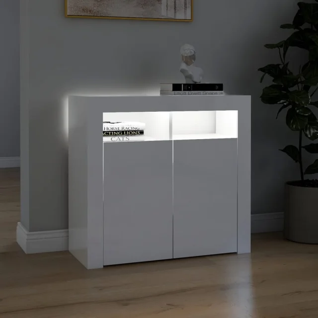Komoda - Predalnik z LED lučkami visok sijaj bela 80x35x75 cm