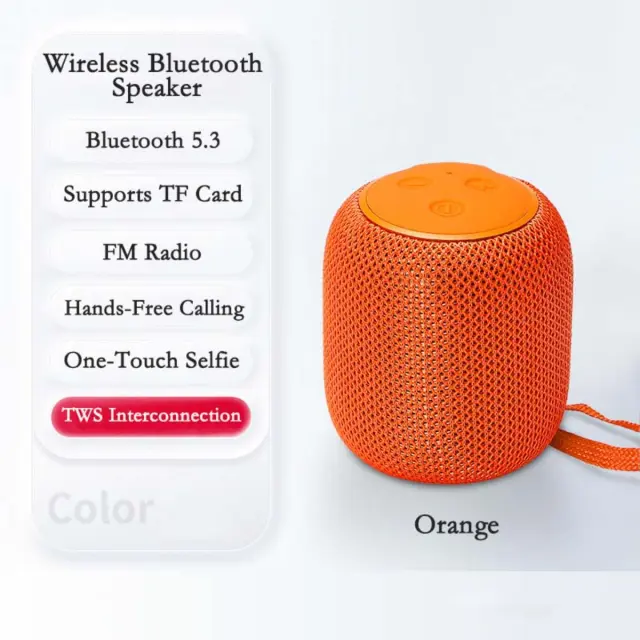 Kompakten Bluetooth 5.3 zvočnik - Prenosni mini zvočnik z FM radiem in TWS stereo Orange