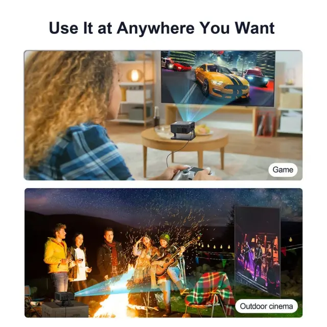 Visoka ločljivost in jasnost: Uživajte v ostri in jasni sliki s podporo za HD 720P, ki zagotavlja živahne barve in podrobnosti za izboljšano izkušnjo gledanja. Idealen za filme, igre in predstavitve, ta projektor prinaša kakovostno vizualno izkušnjo v vaš dom ali pisarno. Z njim boste lahko uživali v filmih in serijah kot še nikoli doslej.