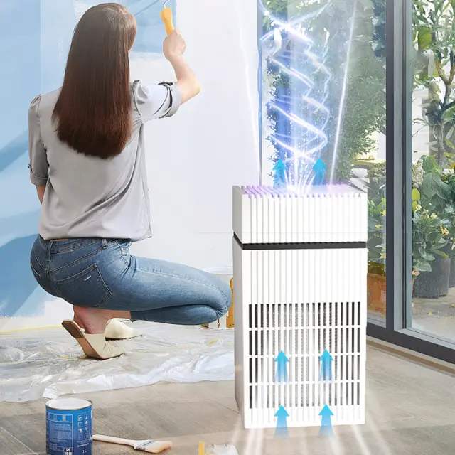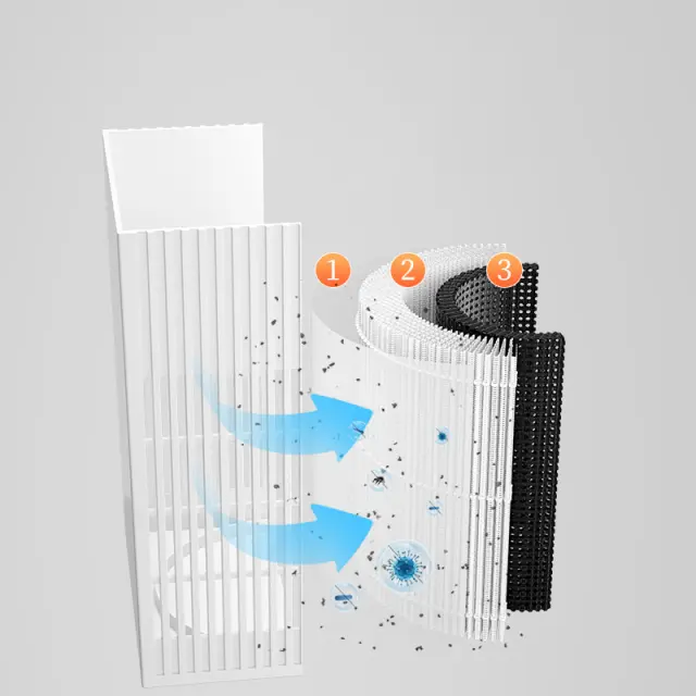 Čiščenje z negativnimi ioni: Funkcija negativnih ionov izboljša postopek čiščenja zraka s sproščanjem negativnih ionov, ki se vežejo na delce v zraku, zaradi česar postanejo težji in padejo na tla. To pomaga dodatno zmanjšati prah, cvetni prah in druge alergene v zraku, kar ustvarja čistejše in udobnejše okolje. Negativni ioni tudi pomagajo osvežiti zrak in nevtralizirati vonjave, zaradi česar se vaš prostor počuti poživljenega in osveženega. Izkusite prednosti tehnologije negativnih ionov za izboljšano kakovost zraka in splošno dobro počutje.