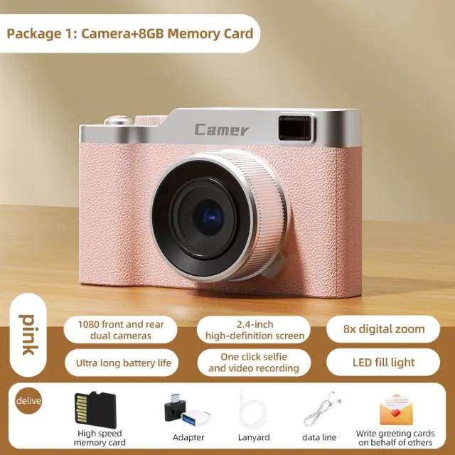 Kompaktni digitalni fotoaparat s 5x optičnim zoomom in 32 GB TF kartico Pink
